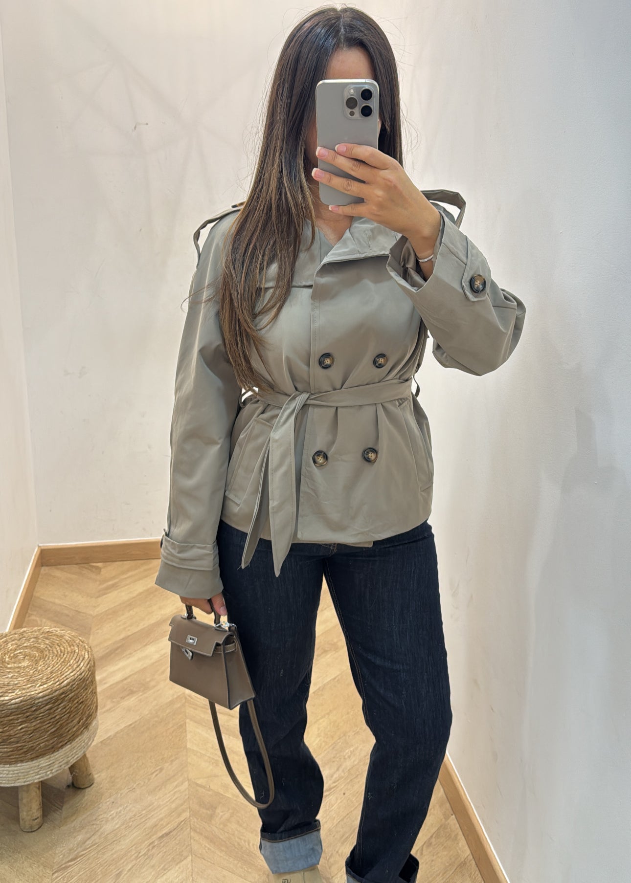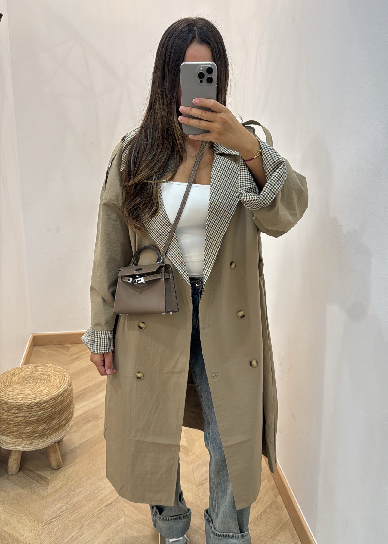 Trench retroussé quadrillé [ beige ]