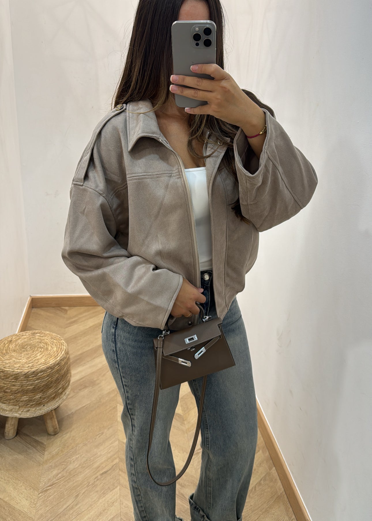 Veste courte en daim [ taupe ]