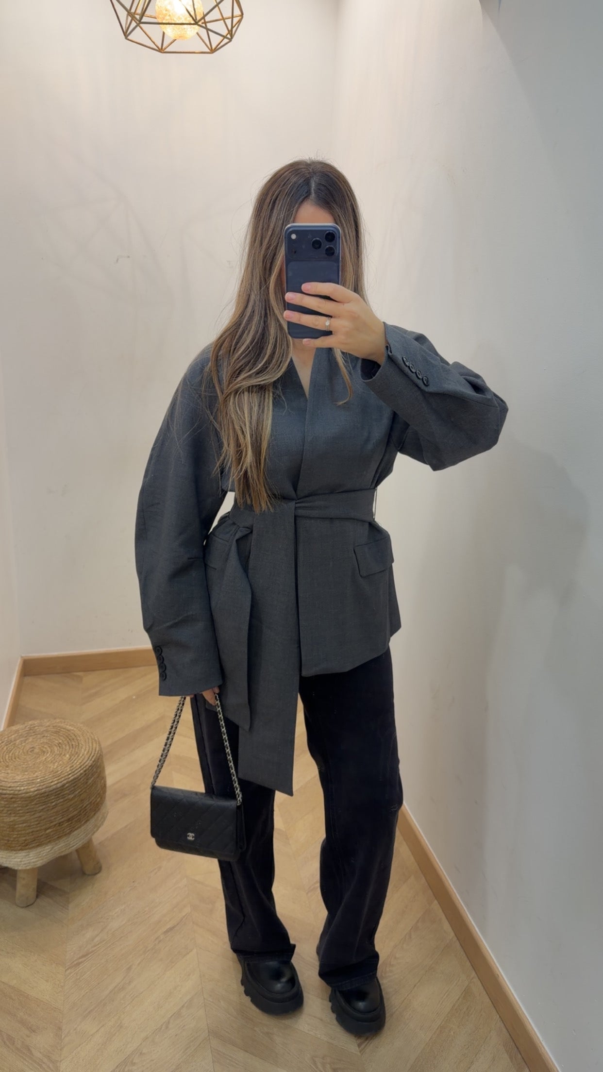 Veste tailleur avec ceinture [ gris]